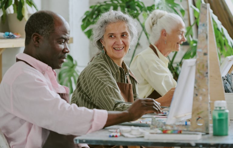 Creative Arts and Crafts: Hands-on sessions providing a creative outlet through activities like painting, drawing, knitting, and other crafts.